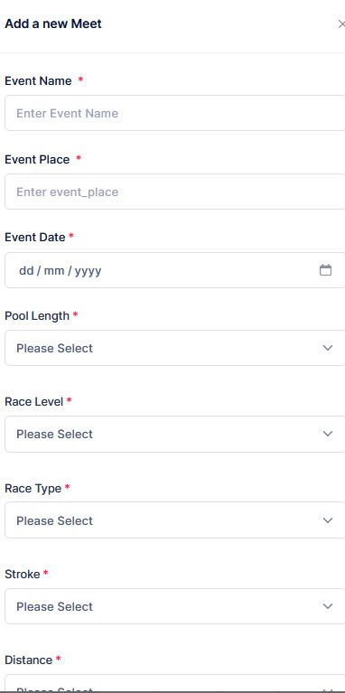 Click on the ‘Add Meet’ button at the top of the ‘Meets’ page. A modal with the required information for adding a meet to your profile will appear. You will need to enter the meet details and 1 race to activate the meet entry. Additional races can be entered after the initial setup.