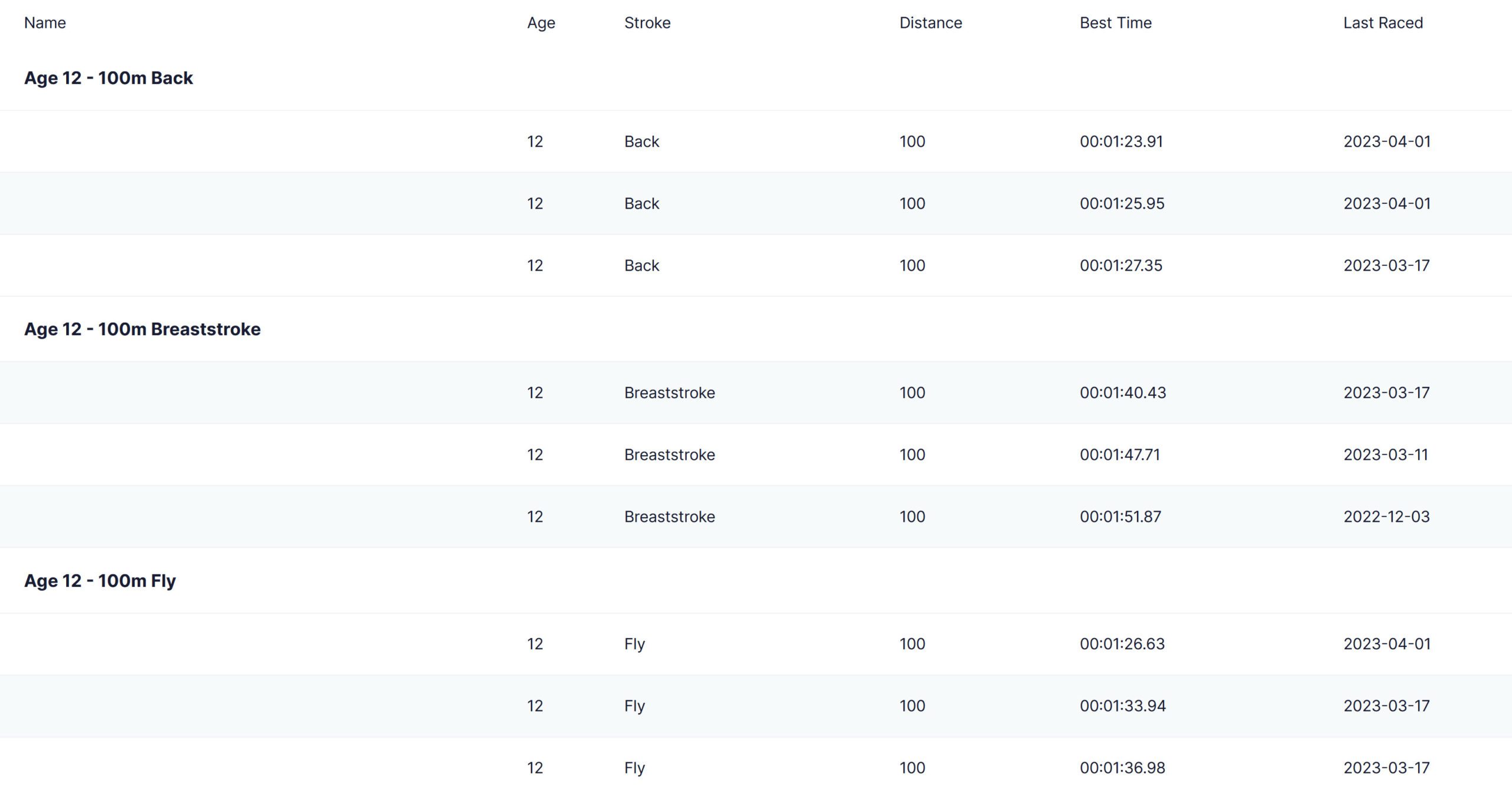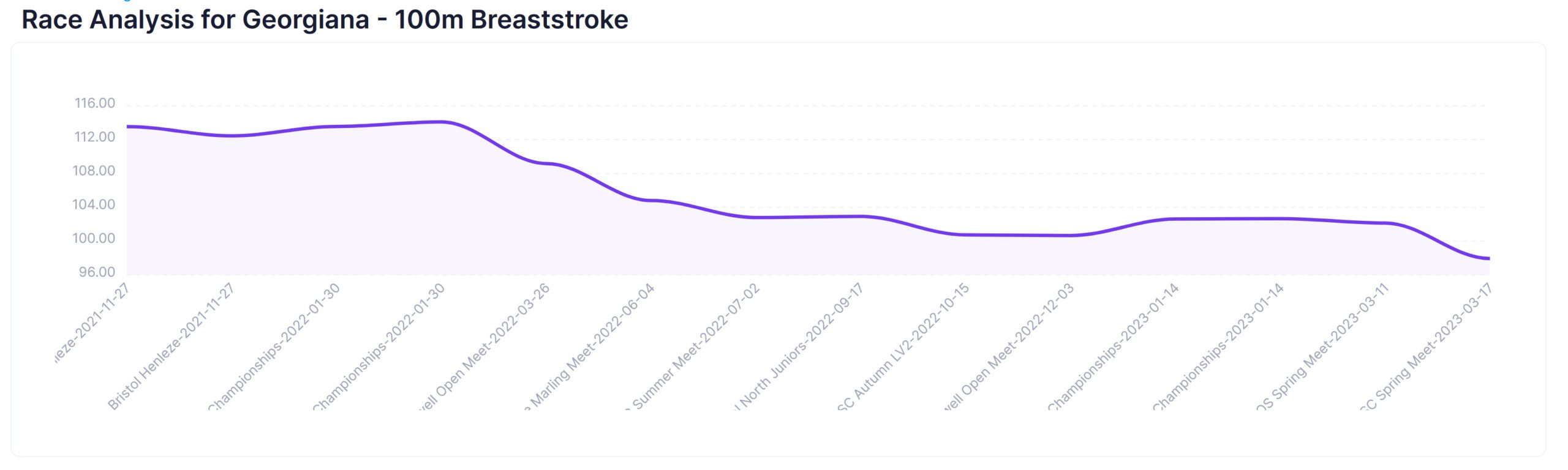 We are working on a system that will record any training, either in the pool or in the gym that will contribute to the swimmers performance. We want to capture dates, duration, activities etc and build these in to the normal race analysis. Improvements will come after hard work and focused training so we want to display this too.